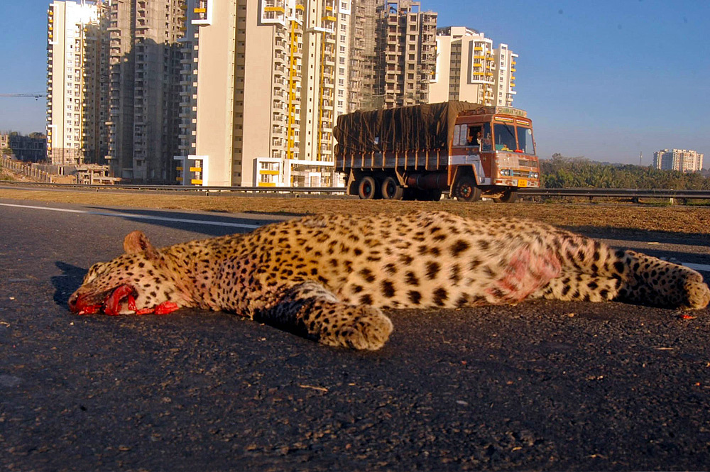 A leopard was run over by a heavy vehicle on the Nandi Infrastructure Corridor Enterprises (NICE) Road, connecting Bannerghatta Road and Kanakapura Road. It shows how much the urban sprawl have begun infringing on wildlife habitat. Forest officials and the Bannerghatta police, who visited the spot visit in the morning, said that the leopard sustained head injuries and died on the spot. The forests urban department which has ordered a probe is in the process of identifying the vehicle from CCTV footage. Prominent caution boards displaying pictures of leopards now alert commuters on the NICE Road. The initiative was taken up by the forest department and NICE Limited.